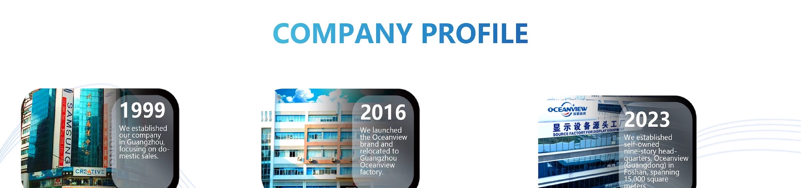 Основанная в 2023 году, компания Oceanview (Guangdong) Technology Co., Ltd. продолжает наследие компании Viewg, основанной в 1999 году. Имея более чем 25-летний опыт работы в отрасли, мы являемся профессиональным производителем, специализирующимся на17–49-дюймовые ЖК/LED/OLED-мониторы и21,5–27-дюймовые моноблочные ПК BareboneМы обслуживаем как OEM/ODM-клиентов, так и глобальных дистрибьюторов. Мы предоставляем долгосрочные OEM-услуги таким известным брендам, какAOC, IPASONи многое другое.